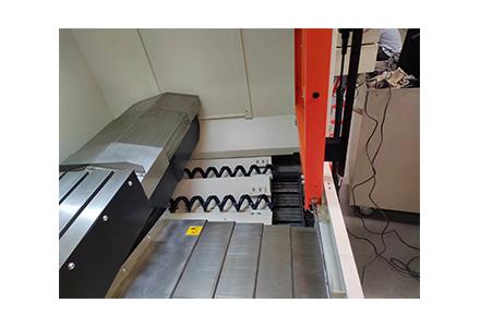 8) 在床身两侧内嵌螺旋排屑槽,标配链板式排屑器,采用前排屑结构,合理有效利用机床空间,操作方便。
